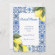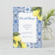 convites de chá de panela de limoncello em tons amarelos e azuis.