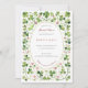Compartilhe o começo da sua história de sorte no amor com este convite de casamento encantador. Apresentando um belo design de aquarela de camarões brancos, entrelaçados, e corações cor-de-rosa doces, este convite captura um sentimento de romance e boa fortuna. Um delicado e falho caixote de bordas pontilhado em ouro, um oval central onde seus detalhes de casamento são mostrados elegantemente em fontes clássicas de serifa e roteiro romântico. Perfeito para um casamento de primavera irlandês, inspirado no Céltico, jardim ou capricho, este convite é para encantar seus convidados.