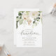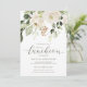 Elegante Chá de panela Luncheon Invtions - Greenery Foliage White Floral Buquê Buquê (Registry & Wedding Website no Back): Estes convites de chá de panela verde-água são perfeitos para uma noiva de inverno ou chá de casal! Com grandes florescências brancas e uma dica de brilho dourado, seus hóspedes certamente ficarão impressionados! A parte traseira apresenta um design de folhagem simples com as informações do registro do casal e do site (você pode excluí-lo se não quiser). Altere seu texto para torná-lo seu. Você também pode alterar a cor do texto e a cor do plano de fundo!