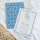 Convide os convidados a comemorar a noiva a estarem com belos convites de chá de panela de inspiração italiana com letras cursivas de estilo manuscrito acentuadas com uma borda de fita escrivada em azul vibrante. Uma ilustração de limão siciliano desenhada à mão, acentuada com amarelo ensolarado, completa a design de um olhar de verão na costa de Amalfi. Estes convites de chá de panela elegantes do Mediterrâneo têm um doce sentimento feito à mão e parecem especialmente bonitos em papel Laid texturizado. Cartões invertidos a um padrão de azulejo mediterrânico azul e branco.