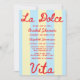 Trendy Stripes com Letras Manuscritas em Chá de panela sunset italiano amarelo-manteiga, azul-claro e coral profundo - Defina o tom para um chá de panela divertido, chique e inesquecível com este stripes italiano azul e amarelo com tema e com La Dolce Vita manuscrito em chá de panela laranja. Um simples e clássico convite para chás de panela do tema Itália, com um fundo listrado azul e amarelo. A frase "La Dolce Vita", A Boa Vida em Italiano, é escrita em moderno e tradicional escrita à mão. Perfeito para primavera ou chá de panela de verão. Personalize este modelo de convite adicionando seus próprios detalhes de evento. Também disponível como download digital instantâneo, perfeito para envio por e-mail, texto ou mídia social.