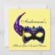 Cheio de tons brilhantes e ousados de púrpura e azul em amarelo, este design de máscara festiva é excelente para o seu evento temático Mardi Gras. Envie estes convites elegantes ao seu convidado para o seu chá de tema Mardi Gras, ou para qualquer evento que você escolher. Basta editar a cor/estilo do texto e a cor/estilo do papel para atender às suas necessidades.