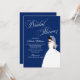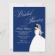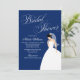 Convites de chá de panela de vestidos elegantes. Linda cor azul marinho perfeita para um chá de panela de outono. Design apresenta uma fonte de script romântica e uma ilustração de na moda. Personalize facilmente com seus detalhes de eventos. Cabelo personalizado e cor de pele disponível mediante pedido. Gráficos por www.jwillustrations.com