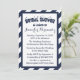 A parte de trás do convite apresenta um marinho azul correspondente e um padrão de distribuição.