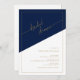 Faça uma impressão duradoura com nosso Chá de panela Azul e Geométrico Dourado. Este sofisticado design apresenta um padrão geométrico ousado em azul marinho profundo e branco nítido, criando um pano de fundo contemporâneo e na moda para sua celebração. A frase do "chá de panela" é mostrada elegantemente em um roteiro dourado em shimmering contra um fundo azul marinho diagonal impressionante, adicionando um toque de opulência e refinamento. Personalize este convite refinado com os detalhes do evento, incluindo o nome, data, local e informações de RSVP da noiva. Esses detalhes são mostrados dentro de uma linha de borda luxuosa de estrutura de ouro, combinada com a coordenação de sans serif e serif douradas em um fundo branco diagonal em negrito. A combinação do rico marinho azul, sotaque dourado e design geométrico torna este convite perfeito para um chá de panela moderno e elegante.