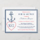 Vintage e chá de panela russo com âncora e amor. Decorado com o padrão de listras na parte traseira do cartão. Personalize o dentro do monograma no coração para o seu nome ou casais iniciais. Personalize este convite para outras ocasiões para o casamento na praia, festa de noivado, chá de fraldas, aniversário e assim por diante.
