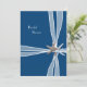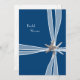 Marinho azul, convites de chá de panela de praia. Starfish decorou a frente desta design de "caixa de presentes". "Fitas" sobre o azul escuro com o texto "Chá de panela" em branco na frente e com o texto modelo azul escuro correspondente no verso, que também é decorado com estrelas.