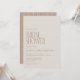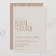 Estes belos e modernos Convites de chá de panela apresentam uma tipografia na moda e linhas de arco geométrico estéticas design em terracotta marrom.