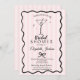Martini desenhado à mão por aquarelas sobre fundo listrado rosa. Este elegante design apresenta uma sofisticada ilustração em vidro Martini, acrescentando um pouco de luxo aos seus convites para eventos. Use este convite para convidar seus amigos e família a desfrutar das pequenas coisas na vida em seu chá de panela.
