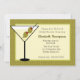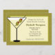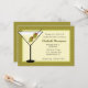 Chá de panela Martini com um martini e azeitonas verdes. O design tem um vidro martini com azeitonas verdes e fundo de cor oliva. Fácil de personalizar com os detalhes do seu chá.
