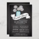 Chá de panela moderno Chalkboard Mason Jar apresentando uma faixa de fita contemporânea com um roteiro de rico e flores coloridas de mãe branca. Um pouco de charme vintage com um convite de chá de panela moderno com texto tipográfico. chá de casamento perfeito para um chá de panela de jardim, chá de panela ou chá de panela de verão.