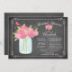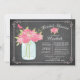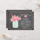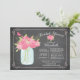 Chá de panela moderno Mason Jar, com um pote de mason-country repleto de flores cor-de-rosa de-rosa, colocado sobre um fundo chic chalkboard com um bonito sotaque floral e borboleta e um quadro caprichoso. Sacudir o convite do nosso chá de panela para ver uma correspondência de volta para um toque especial extra. Perfeito para um chá de panela de chic no campo rústico para outono, inverno, primavera ou queda.