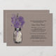 Perfeito para um Chá de panela no estilo country ou talvez você apenas ame Mason Jars! Mason Jar pendurado em um gancho cheio de flores silvestres do campo. Um fundo de textura Burlap com o enforcado Mason Jar cheio de flores silvestres roxas de vinho. Se tiver alguma dúvida sobre este design ou quiser uma mudança de cor, envie-me um e-mail para paula@labellarue.com Também verifique se o Wedding Suite, INVITATION, RSVP, RECEPÇÃO e Cards CONVIDADAS correspondem!