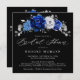 Elegante chá de panela de prata azul-real, branco, com elegante buquê de flores azuis, Marinhos, prateadas, cor branca pura, e folhas verdes de eucalipto. Entre em contato comigo para obter ajuda sobre a personalização ou se você precisar de outro produto com este design.
