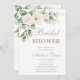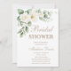 Este Modelo de Chá de panela Floral Branco apresenta um design florescente mínimo com elegância moderna. O convite para chás de panela editável é perfeito para uma celebração simples e na moda de chás de casamento.