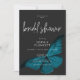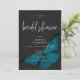 Este design de convite para chá de casamento de apresenta um tema escuro e moderno que é simples, mas espantoso. Um fundo negro de carvão negro é a canvas perfeita para uma mariposa azul-azul-lacrimejante solteiro, suas asas se espalham para o voo. Único e elegante, este design pode ser usado em qualquer estação. Criado pela imprensa simplesmente de farmácia.