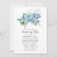 Chá de panela floral a longa distância da casa e do boho azul por correio com penas de pavão.