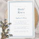 O simples e moderno design azul e branco, empoeirado, apresenta um simples design minimalista contemporâneo com uma dupla borda em azul empoeirado sobre um fundo branco nítido. Personalize o design de chá de casamento de noiva com seus detalhes em letras de tendências e scripts. As costas combinam em azul sólido. Para obter melhores resultados, substitua os detalhes do modelo com seus próprios detalhes, deixando espaço entre os parágrafos como no exemplo e use todas as letras minúsculas quando especificado. Envie um email para invitationsuites@gmail.com com perguntas ou solicitações personalizadas.