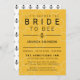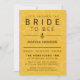 chá de panela com tema de abelhas com um design moderno e minimalista de tipografia contra um fundo discreto de colmeia, e um simples ícone de abelha separando o trocadilho "chá a noiva a ser" e o restante do texto do convite. A parte de trás apresenta um padrão de abelhas correspondente em preto e branco.