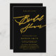 Placa de Chá de panela Mínima Moderna de Script Elegante Preto e Dourado. Celebre o seu dia especial com esta elegante e bela carta de convite para embelezar a sua ocasião especial. Todos os textos estão pré-organizados para que você personalize fácil e rapidamente com seus próprios detalhes.