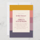 Este chá de panela ousado e na moda apresenta faixas de blocos coloridos empilhadas na mostarda, coral, mauve, blush e plum com fontes sans-serif clássicas e modernas. O painel central destaca o nome da noiva e os detalhes do evento, fazer-o perfeito para uma celebração retrógrada e tendenciosa. Personalize facilmente o texto para um chá único e colorido.