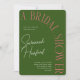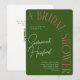Celebre a noiva moderna para estar com um chá de panela simples e chique em um verde florestal profundo com um detalhe de texto em lata de salmão. O texto fácil de editar é flexível para todos os tipos de texto e detalhes personalizados, enquanto o verso tem um conveniente código QR digitalizável para levar os convidados diretamente aos registros para comprar presentes.