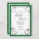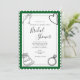 Chá de panela preto e branco moderno divertido com gráficos de casamento desenhados à mão em cada canto. Cor verde do sotaque. Perfeitamente enquadrado com uma borda branca escalada com contorno preto. Coordenar fontes adiciona à beleza deste design.