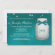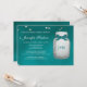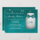 Um frasco de pedreiro hued do vaga-lume de turquesa lindo da cerceta do verde azul do aqua acopla o convite do chá de casamento que os olhares como ele incandescem. Adicione as iniciais e ou o monograma dos noivos ao frasco com uma cerceta profunda e um design impresso branco do olhar da fita. Uma beira subtil do laço da antiguidade do damasco do vintage felicita este design rústico contudo elegante com os vaga-lume enchanting internos e exteriores do frasco. Estes convidam são bonitos para um partido temático do nighttime, do barnyard, da casa da quinta ou de chá de panela da queda do país. © Chrissy H. Estúdio dos trabalhos de arte, LLC. Todos os direitos reservados.
