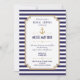 Personalize este Chá de panela náutico moderno na moda. Design azul e branco listrado, definido como um modelo para uma fácil personalização. Abaixo estão os links para um Convite de casamento e RSVP, Cartões de programa, Convite para Janto de ensaio, Cartões de direção e Cartões de marca de agradecimento e Adesivos de favoritos.