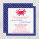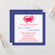 chá de panela moderno e brilhante. Excelente para um evento de tema oceânico ou uma festa no lado da praia. O design unisex o torna ideal para o chá do casal. Possui um caranguejo vermelho com um quadro azul de bolinhas. Ar e aspecto náutico. Adicione seu próprio texto. Também pode ser personalizado para uma festa de aniversário ou evento corporativo.