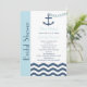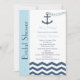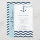Este chá de panela náutico aparece em tons da cor náutica favorita de todos — azul com alguns sotaques brancos. A âncora com uma corrente cardíaca é o ponto focal com as palavras "Ahoy Matey!" logo abaixo da âncora. As palavras "Chá de panela" aparecem numa faixa azul mais clara do lado esquerdo do convite e aparece no fundo um padrão quevron divertido para simular a água. Você pode personalizar este convite com todos os seus detalhes importantes para fazer com que o tema náutico excelente convide a noiva a procurar um tema náutico. Direitos autorais