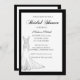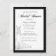 Design apresenta um belo vestido de noiva desenhado à mão em preto e um fundo branco enquadrado. Ele pode ser personalizado com suas próprias informações.