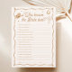 Faça sua celebração inesquecível com nosso Chá de panela Ocidental Personalizado que Conhece o Melhor Jogo da Noiva. Perfeito para botas e ideias de chás de panela espumantes, esta atividade divertida é uma obrigação para qualquer pessoa que procura por ideias únicas de chá de panela ocidental. Excelente por ideias de chás de panela do país e ideias de chá de panela de vô, este jogo adiciona uma reviravolta divertida à sua festa. Quer você esteja hospedando um chá de panela clássico do país ou planejando as ideias mais modernas de chá de panela de cowgirl, este jogo manterá os convidados entretidos!