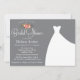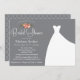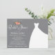 Casamento ou Chá de panela, com buquê floral elegante e um lindo vestido de noiva sobre uma cinza de fundo com flores cor-de-rosa de pêssego.