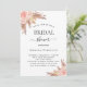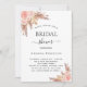 Para um chá de panela moderno estilo boho. Um fundo branco na frente. Decorados com ouro rosa e flores, rosas e erva-pampas cor-de-rosa. Personalize e adicione um nome e detalhes da parte. Fundo: rosa dourado.