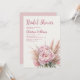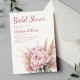 Faça seu chá de panela inesquecível com este convite floral cor d'água rosa. A design apresenta belas peônias cor-de-rosa-pincelado e grama-pampas, fazer-a na moda e charmosa. Use as ferramentas de design para personalizar o texto, as fontes e as cores. Também disponível como download.