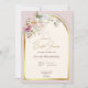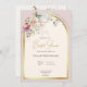 Um Chá de panela pastel, com um design elegante de rosas pastéis delicados contra um arco dourado. Esta design dá o tom de uma comemoração elegante e de retribuição em homenagem à futura noiva e às suas núpcias.