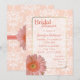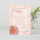 Pessegueiro elegante e chá de panela de damasco branco, com gráficos de uma área de texto enquadrada de tom dourado, no meio, e uma margarida Gerber colorida de pêssego bonito, no canto inferior esquerdo. O texto em pêssego é totalmente personalizável e pronto para personalizar seu evento noivo. Belo convite para a noiva ser amada.