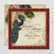 SELEÇÃO DE PAPEL: Esta é mostrada no "papel básico", outra escolha de excelente seria "gelo metálico", que é uma superfície brilhante branca e percalçada e limpa. Também seria bonito em linhagem "Champagne Metallic", sentida ou qualquer outra opção. COR PALETTE: vermelho escuro, bronzeado, azul real creme, verde e ferrugem. DESIGN: Esta antiga coleção de casamentos inspirada em vintage tem um conjunto completo de produtos e pode ser criada em várias cores. Se quiser que seja igual ao seu casamento, avise-nos por e-mail e ficaremos felizes em ajudá-lo. Este design consiste num pavão estático sobre um ramo de árvore, onde se pintava três penas de pavão e sobre uma gravura de anjo, espirais, escrita manual antiga, pergaminho de rendas pintadas manualmente e uma bela cor damasco de arte original. A cor de fundo pode ser alterada para corresponder ao seu casamento.