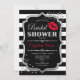 Chá de panela. Design branco preto elegante com prata brilhante falso. Apresenta lábios vermelhos beijam, listras brancas pretas, confetti e fonte de script. Perfeito para um chá na moda. Envie-me uma mensagem se precisar de mais personalização.