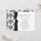 Chá de panela elegante feito no branco, com uma cor damasco preto e branco formal e uma fita e um arco pretos, decorando o lado esquerdo do convite. O texto está pronto para personalizar, para serir suas necessidades do evento do chá. Convite que bonito a noiva amará.