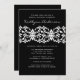 Parta seu evento fora do direito com nosso chá de panela que caracteriza um damasco branco bonito em um fundo preto rico. Combinação de cor na moda do branco & dos azuis marinhos. Apenas personalize nosso convite com sua informação do chá de casamento e você é todo ajusta-se para ir. Disponível em outras combinações de cor em www.celebrateitinvites.com
