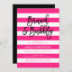 Convite Chic Bridal Brunch com as palavras "Brunch & Bubble" em um script de pincel preto de tendências contra um fundo de listras rosa e branca. A placa tem um lado preto correspondente. Veja outros itens correspondentes aqui https://www.zazzle.com/collections/119250194970828530?rf=238364477188679314 Personalize-o substituindo o texto do marcador de posição. Para obter mais opções, como alterar a fonte e seu tamanho/cor ou o espaçamento entre letras, clique no botão "Personalizar". *Observe que a Marca d'água do Zazzle que aparece na visualização de zoom NÃO aparecerá no produto impresso final. © Rosewood e Citrus