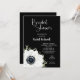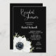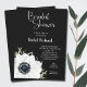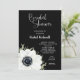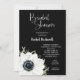 Uma flor esbelta e branca de anêmona e folhas sobre fundo negro estão prontas para personalizar para seus convites de chá de panela, casais, chás de casamento ou qualquer evento especial, apenas mudar a redação. CORRESPONDENDO a itens na nossa loja.