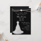 chá de panela lindo de preto, com gráficos de uma dupla fita de pérolas no topo, e um vestido branco de casamento, no fundo esquerdo. O texto em branco é totalmente personalizável para atender às suas necessidades. O convite elegante para a noiva ser apreciada por anos.