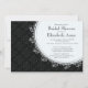 Nossas cinzas bonito e Na moda escuras de cinzas e convites de chá de panela pretas apresentam uma cor damasco clássica com uma delicada imagem branca de rolagem. Convite perfeito para o chá de panela, chá de panela de verão, chá de panela de inverno ou chá de panela de outono. O nosso chá de panela de damask vintage está disponível no nosso compro numa grande seleção de cores. Visite o nosso compro para ver os carimbos de correio de chá de casamento floral, autocolantes e notas de agradecimento.
