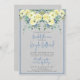 Um belo chá de panela floral com flores azuis e amarelas com um verde selvagem e uma cinza serena. Coordena-se perfeitamente com a coleção Blossoming Love. Entre em contato comigo se você quiser ajuda para personalizar este convite.