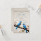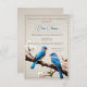 Crie um convite exclusivo para todos os seus, com um chá de panela de primavera. O design de convite apresenta um par de pássaros azuis que repousam sobre um galho de madeira com primavera contra um fundo texturizado em papel. Material adicional disponível com esta design também.