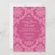Inicie seu chá de panela diretamente com nossos convites de chá de Casamento tema damasco rosa. Design apresenta um design de na moda e moderno Damask definido em um plano de fundo cor-de-rosa com uma elegante estrutura redonda em escala. Convite perfeito para um primavera, verão ou chá de panela de jardim. Fácil de personalizar com as informações da sua chá de panela. Disponível em nosso compro em www.celebrateitinvites.com em uma grande seleção de antecedentes impressionantes.