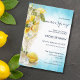Este convite para casamento de cores aquáticas moderno é perfeito para a noiva que quer uma mistura de design desenhada à mão e elegância moderna. A aquarela Lemon Citrus Limoncello Itália Destination Wedding Invitation , juntamente com a letra moderna do roteiro, lhe dá um aspecto feminino, mas sofisticado. A letra moderna do roteiro faz uma bela combinação com o desenho de aquarela. Inclui uma foto no verso